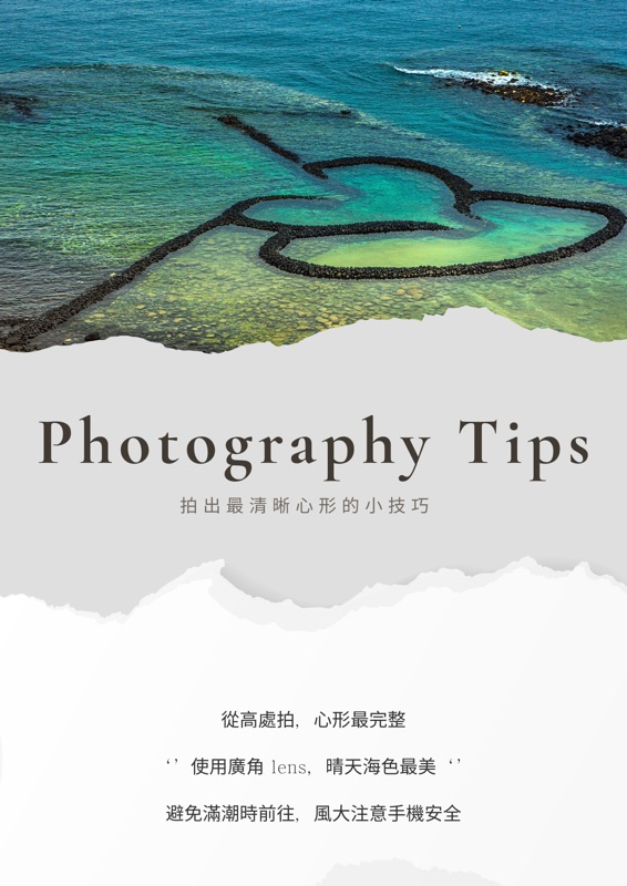 - 當日退潮時間是否落在白天,且退潮高度足夠低,才能完整看到雙心石滬的心形輪廓。